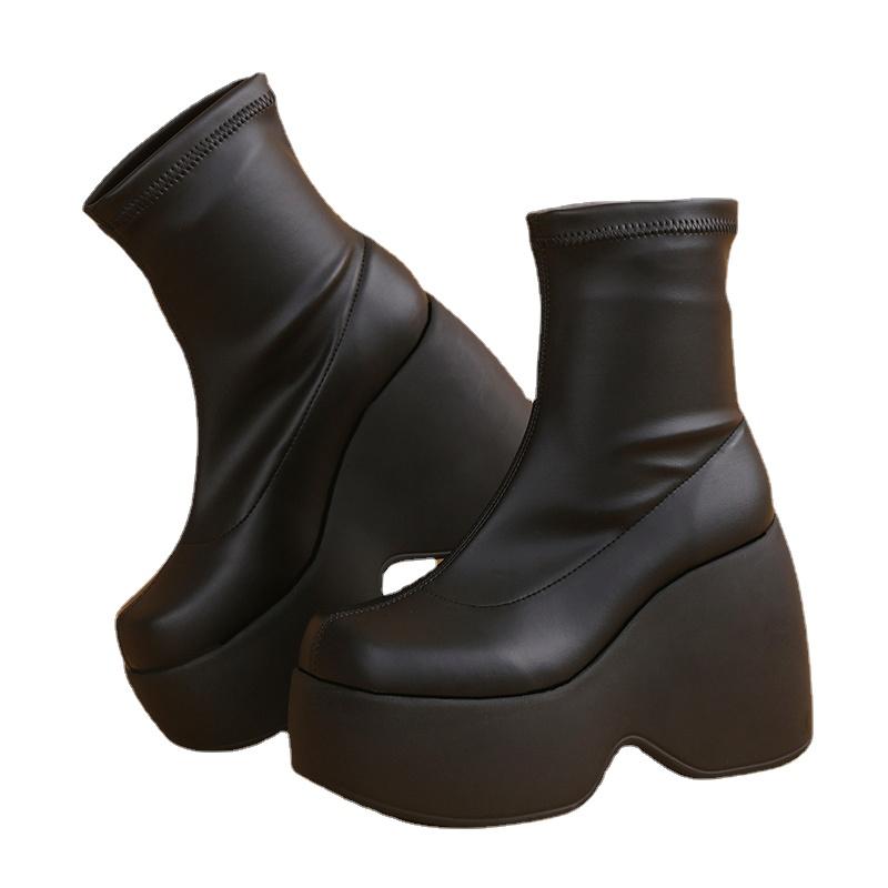 Платформенные ботильоны на танкетке для женщин, модные ботильоны до щиколотки на массивном каблуке, готические, совершенно новые, обувь в ретро-стиле, удобные, панк, женские, черные высокие ботинки