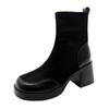 Женские модные ботинки на среднем каблуке 2024 года, новые кожаные ботильоны с круглым носком, женские теплые шерстяные ботинки для женщин