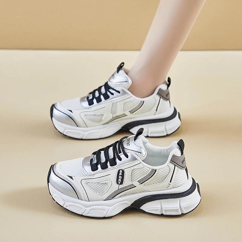 2024 Новые спортивные туфли на толстой подошве Повседневные осенние дышащие сетчатые женские туфли на толстой подошве Кроссовки для бега и тенниса Zapatos Mujer