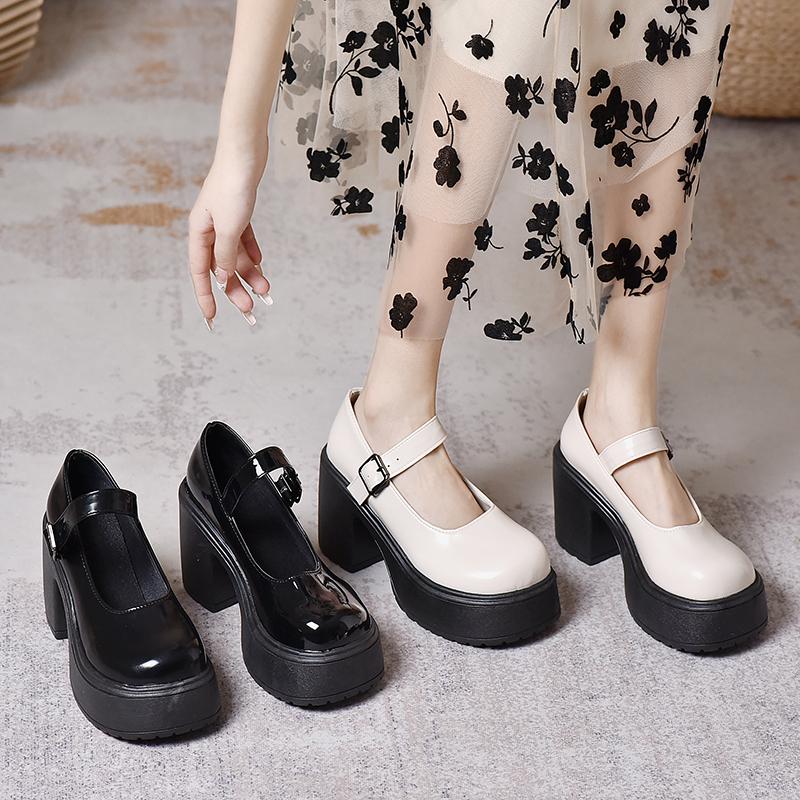 Женские туфли Мэри Джейн на толстом каблуке, весенние, новые, винтажные, на платформе, в стиле Лолиты, для женщин, увеличенные, для студентов, неглубокие женские туфли-лодочки