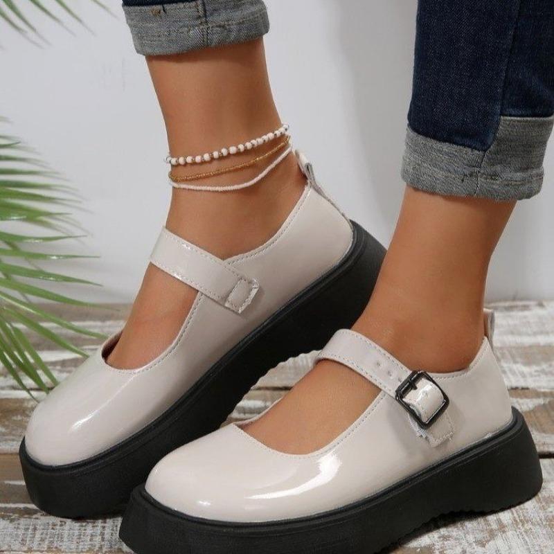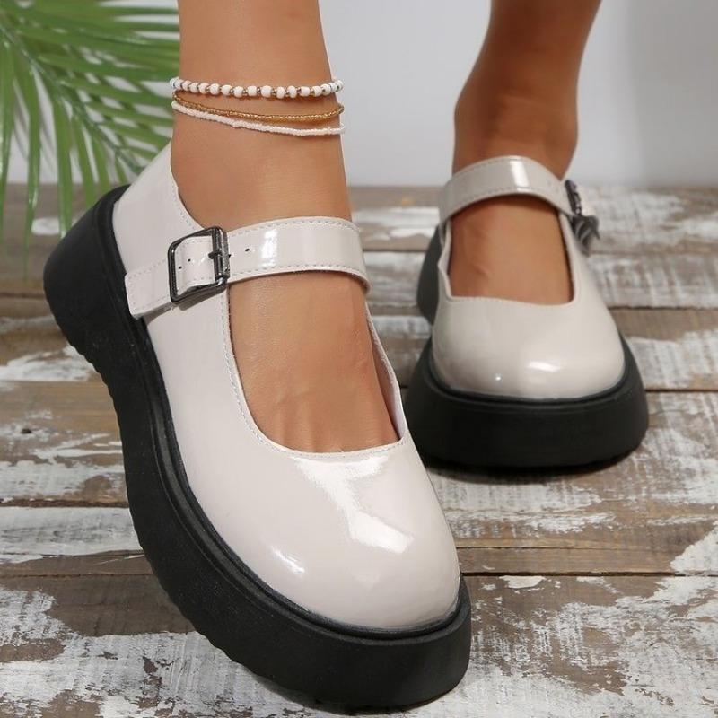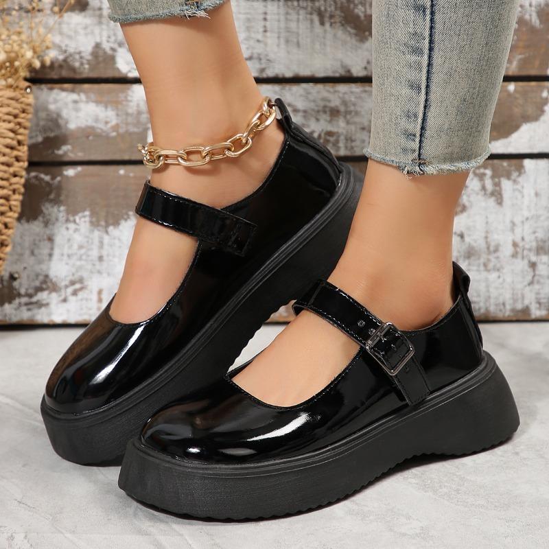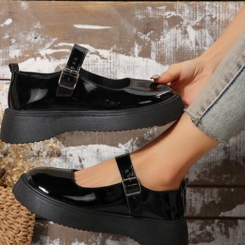 Распродажа женской обуви. Модные женские туфли-лодочки с круглым носком. Осенние туфли на плоской подошве с мелкой пряжкой. Туфли на платформе большого размера. Zapatos Mujer
