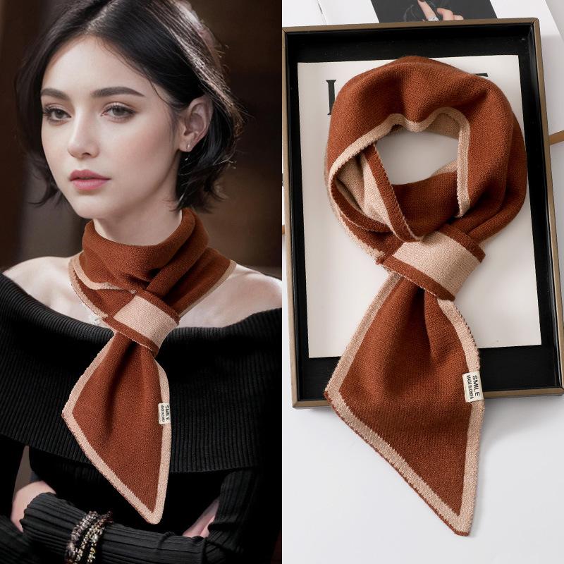 Женский вязаный шарф в корейском стиле, весенне-осенний шарф с короткими полосками в клетку, зимний шарф с шейным платком, универсальный шарф с воротником