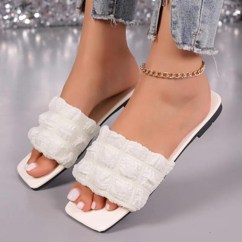 2024 Новые популярные летние модные однотонные женские тапочки с открытым носком и квадратным носком, пляжная обувь для женщин Zapatos Mujer