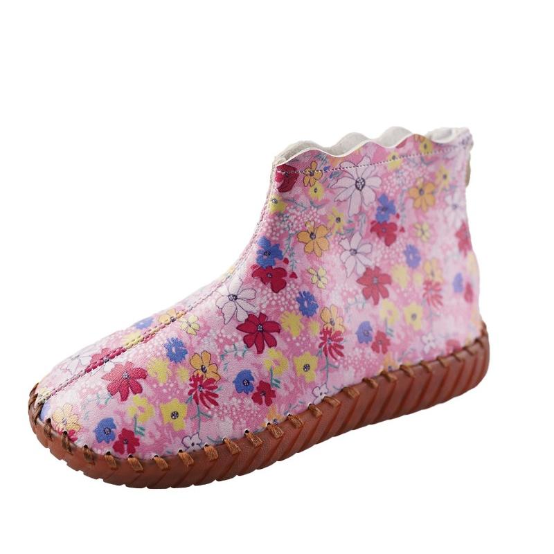 Большие размеры 36-43 Женская обувь 2024 Зима Новейший дизайн Розовые Цветочные Женские Сапоги Ручной Работы Плоские Повседневные Сапоги Zapatos De Mujer