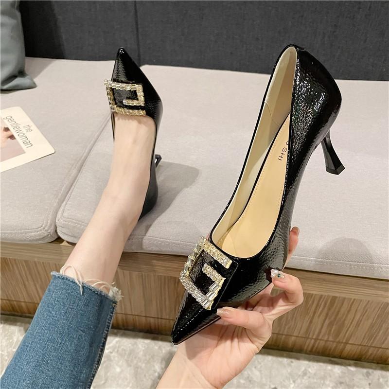 Женские туфли-лодочки с острым носком 2024 года, новые универсальные туфли с острым носком на весну и осень, туфли на высоком каблуке со стразами