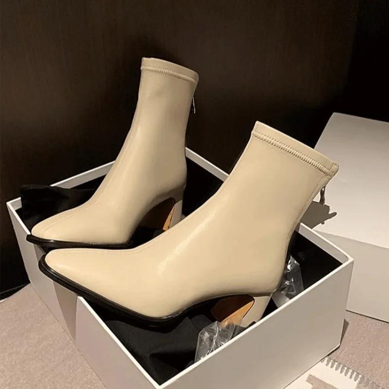 2024 Новые модные однотонные женские ботинки с круглым носком, на шнуровке, на толстом каблуке, с молнией сзади, модные ботинки, повседневные, Zapatos De Mujer
