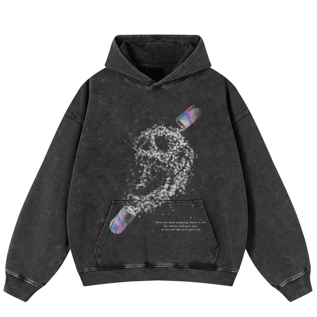 Уличная одежда Ретро Череп Графический стираный черный свободный унисекс толстовка Y2K — купить товар онлайн с бесплатной доставкой по всему миру!