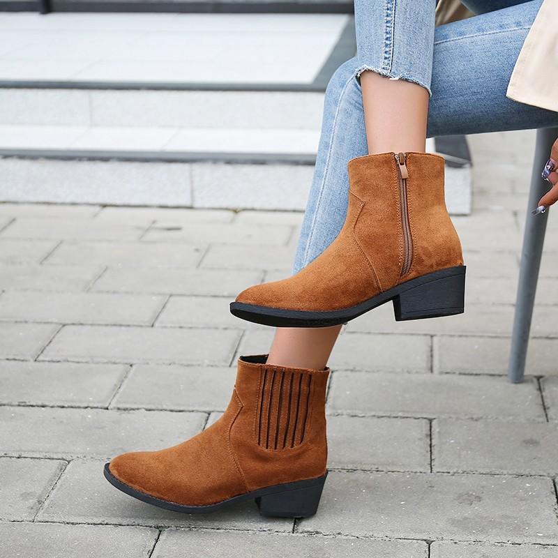 Женские сапоги осень-зима модные ботильоны на молнии голые ботинки ретро из искусственной замши женские ботинки челси с круглым носком на низком каблуке повседневные ботинки