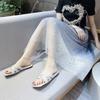 Тапочки женские летние модные сандалии 2024 года женские тапочки с открытым носком повседневные туфли на плоской подошве зеленые шлепанцы женские повседневные дикие ленивые тапочки