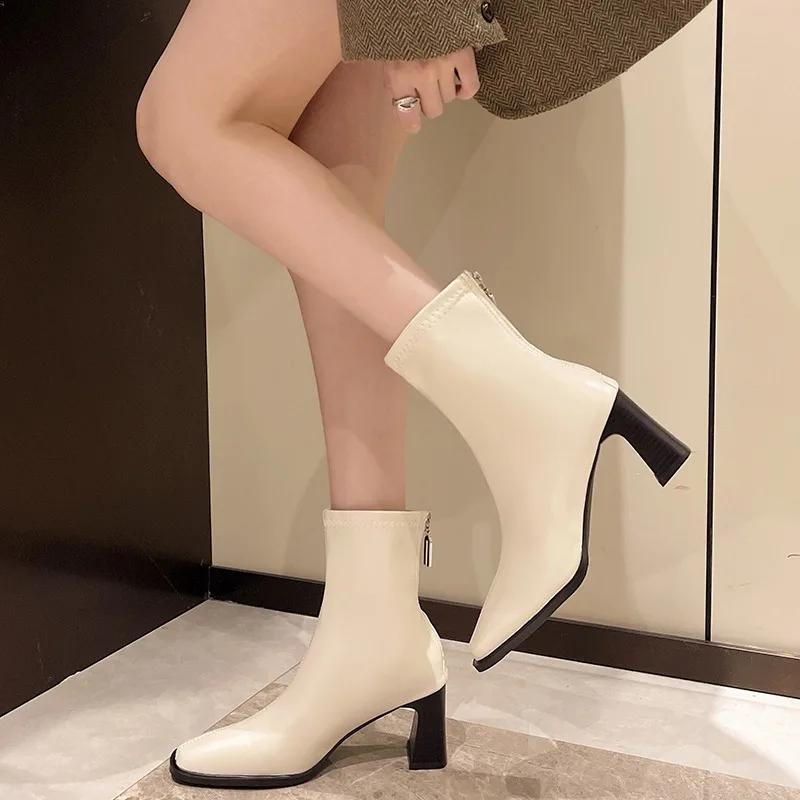 Женская обувь 2024 года, высококачественные женские ботинки с молнией сзади, модные ботинки с квадратным носком для офиса и карьеры, горячая распродажа, большие размеры, однотонные ботильоны — купить товар онлайн с бесплатной доставкой по всему миру!