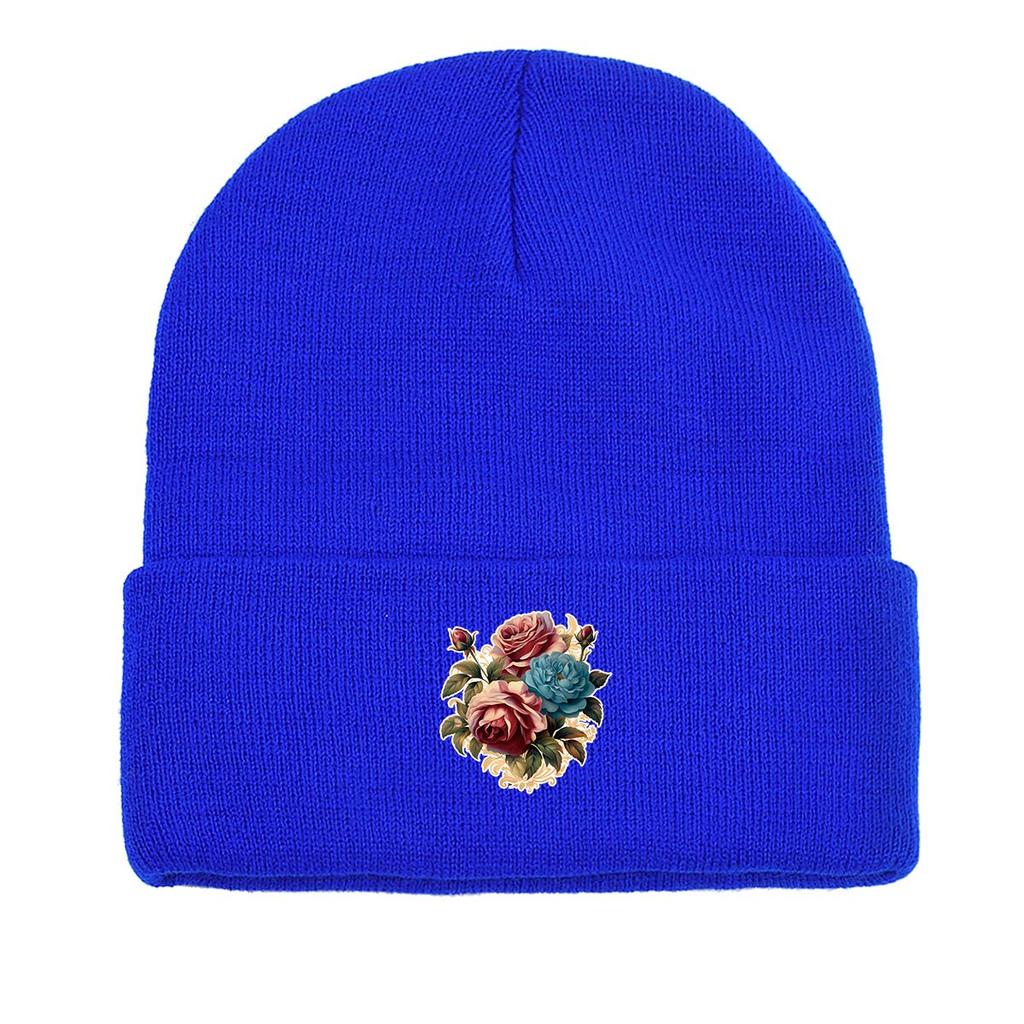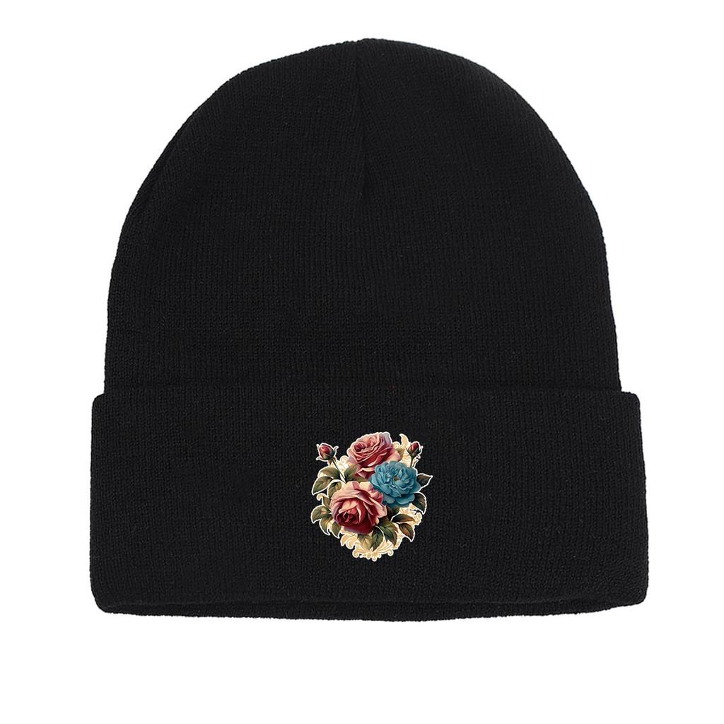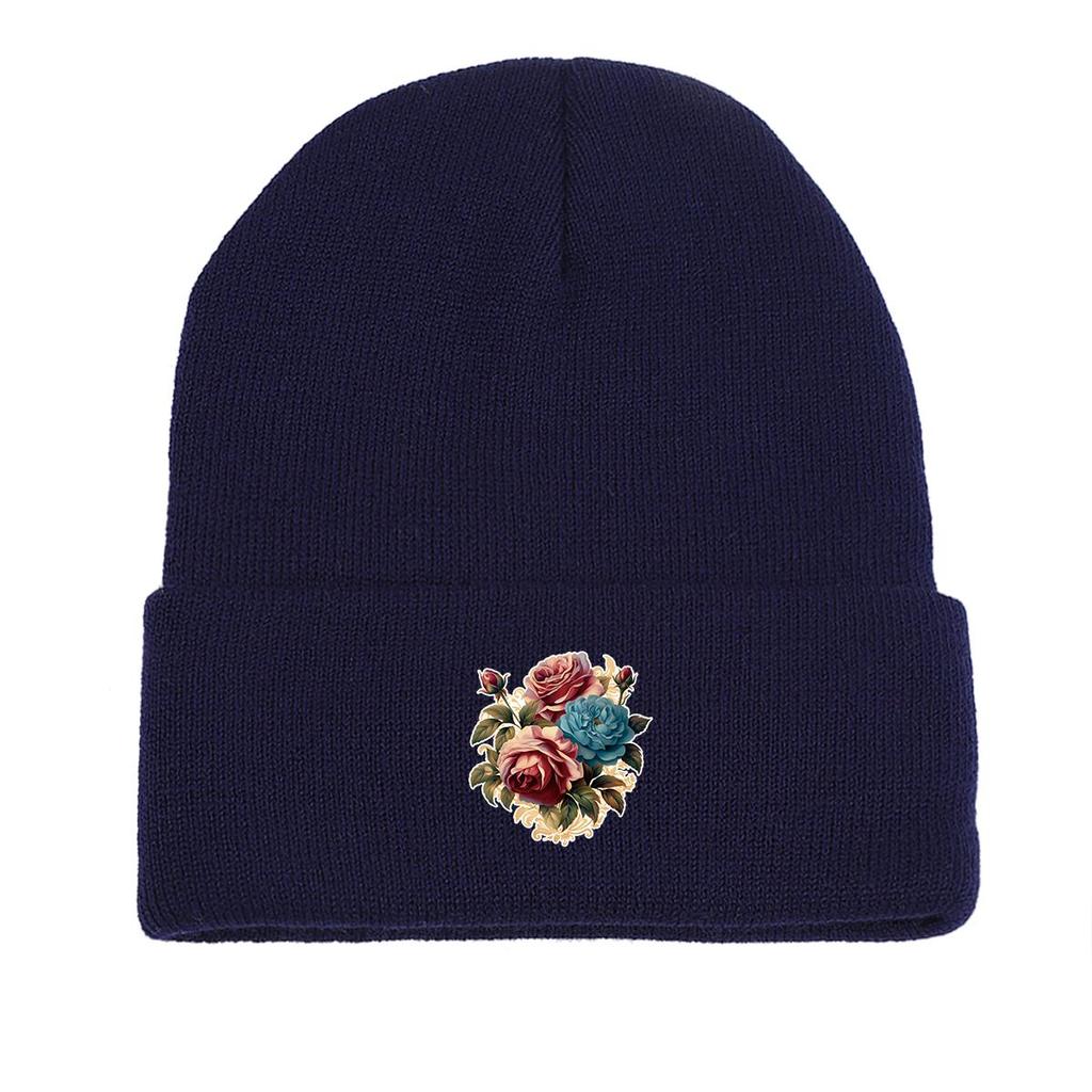 Цветочная зимняя вязаная шапка-бини, шапка-череп с манжетой, простые шапки-помпоны, вязаная шапка-бини, идеальный выбор для защиты ушей, повседневная одежда для альпинизма