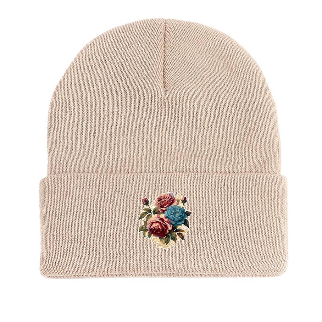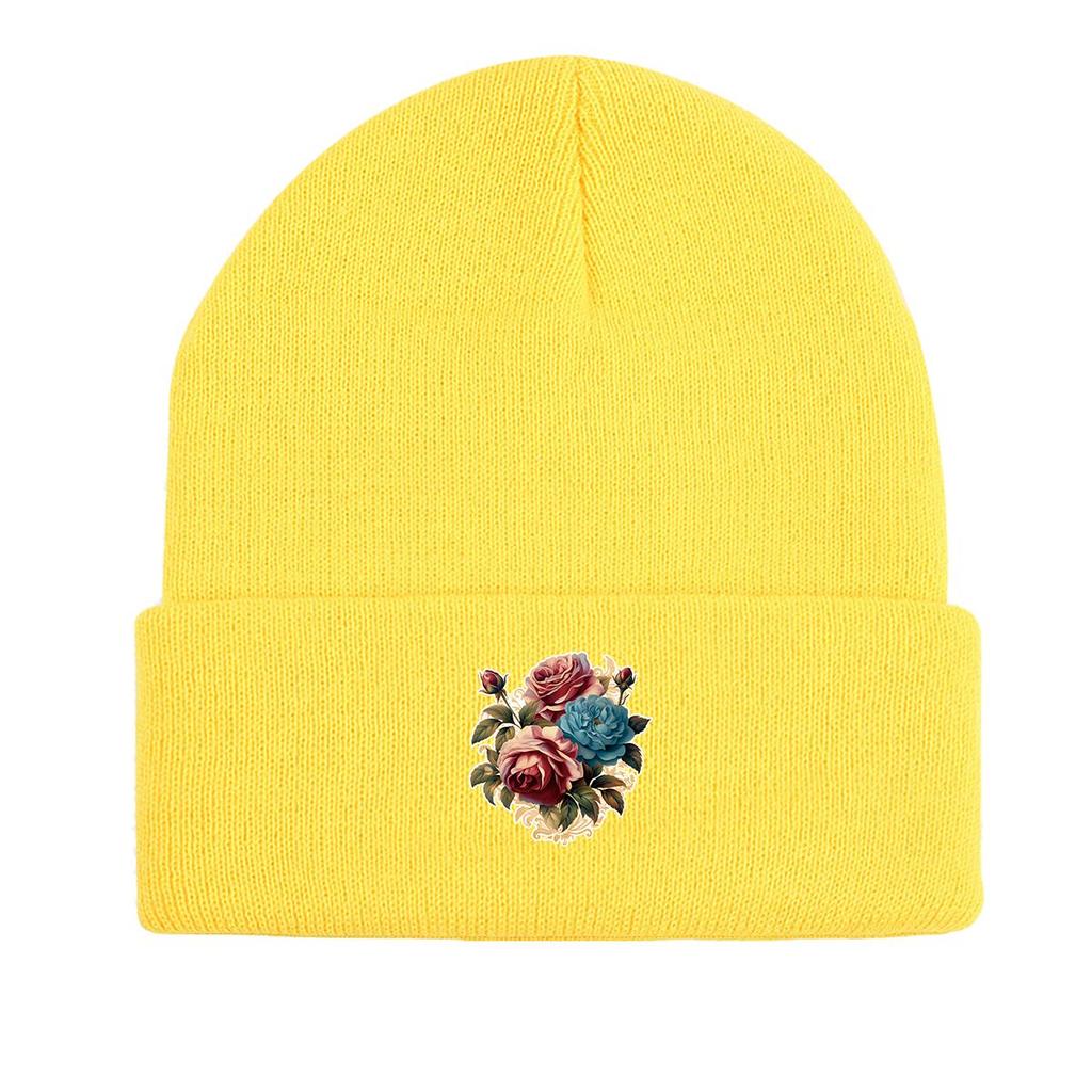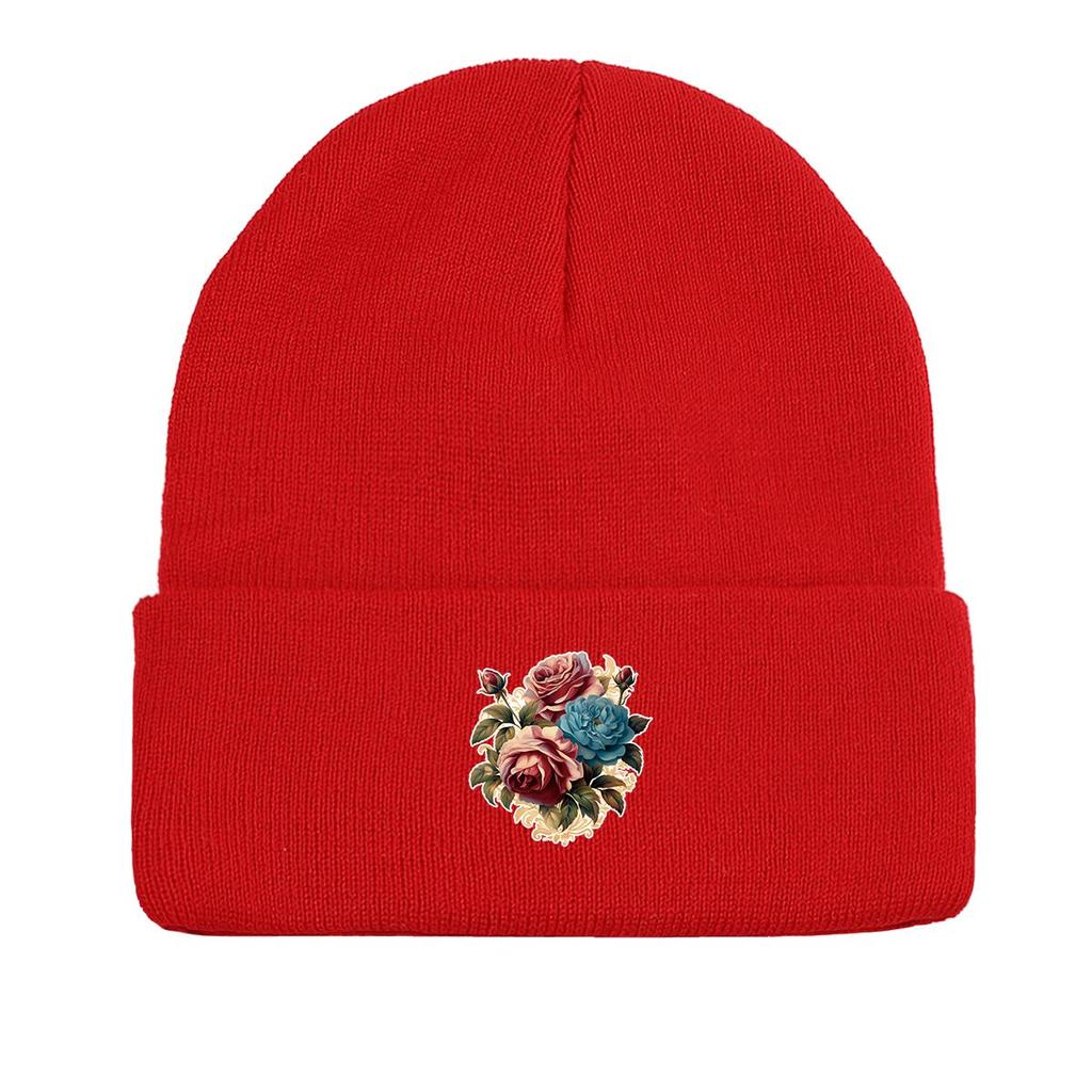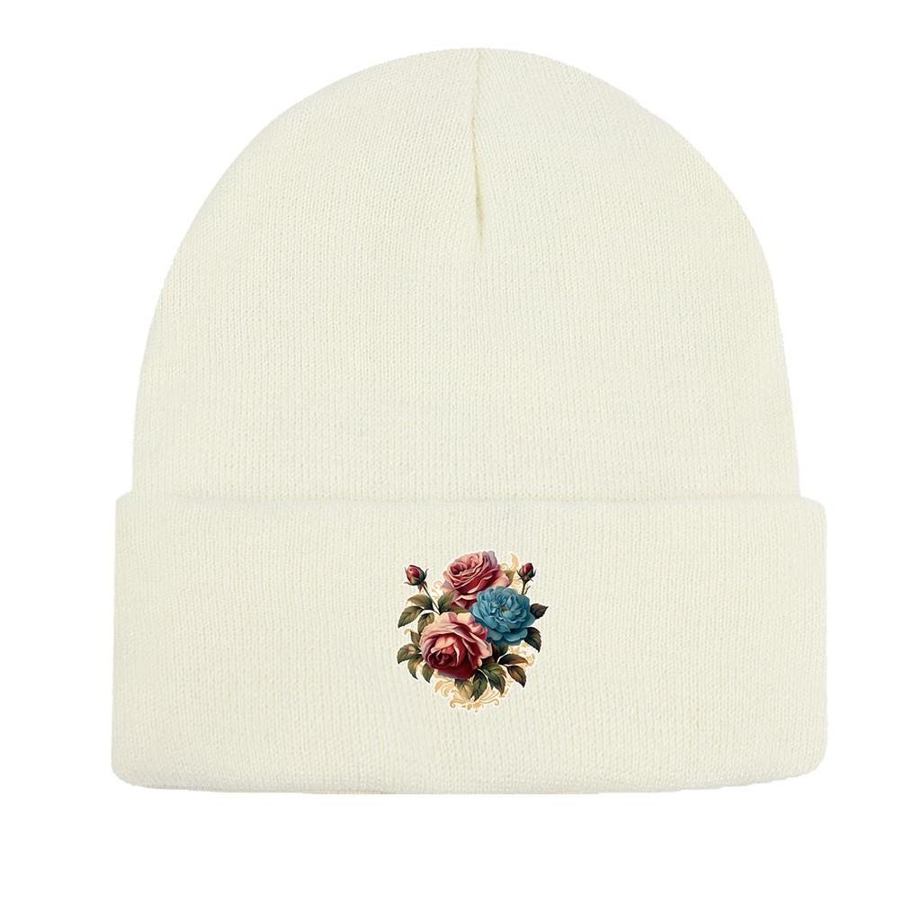Цветочная зимняя вязаная шапка-бини, шапка-череп с манжетой, простые шапки-помпоны, вязаная шапка-бини, идеальный выбор для защиты ушей, повседневная одежда для альпинизма