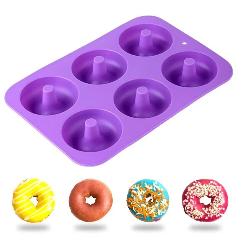 1 шт. силиконовая форма для пончиков - 6 ячеек, силиконовые формы для пончиков, противень для выпечки, антипригарное устройство для приготовления пончиков, силиконовая форма для полноразмерных пончиков, бубликов, противень для выпечки пончиков своими руками, кондитерские принадлежности, инструменты для выпечки