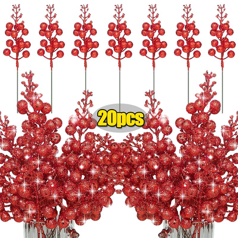 1-20 шт. блестящие искусственные красные ягодные стебли рождественские искусственные ягодные ветки самодельные рождественские елочные гирлянды украшения для праздничного стола — купить товар онлайн с бесплатной доставкой по всему миру!