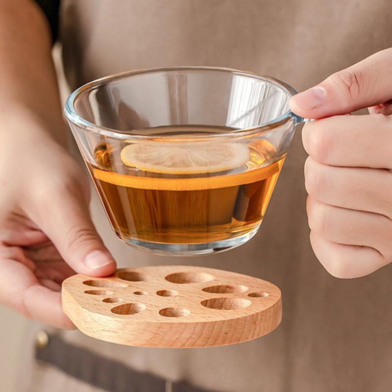 Подставка под стакан из 2-х деревянных деталей - подставка из натурального бука, декоративные коврики под чашки для чая и кофе, симпатичная подставка под кружку, термостойкие деревянные салфетки для напитков, аксессуары для стола