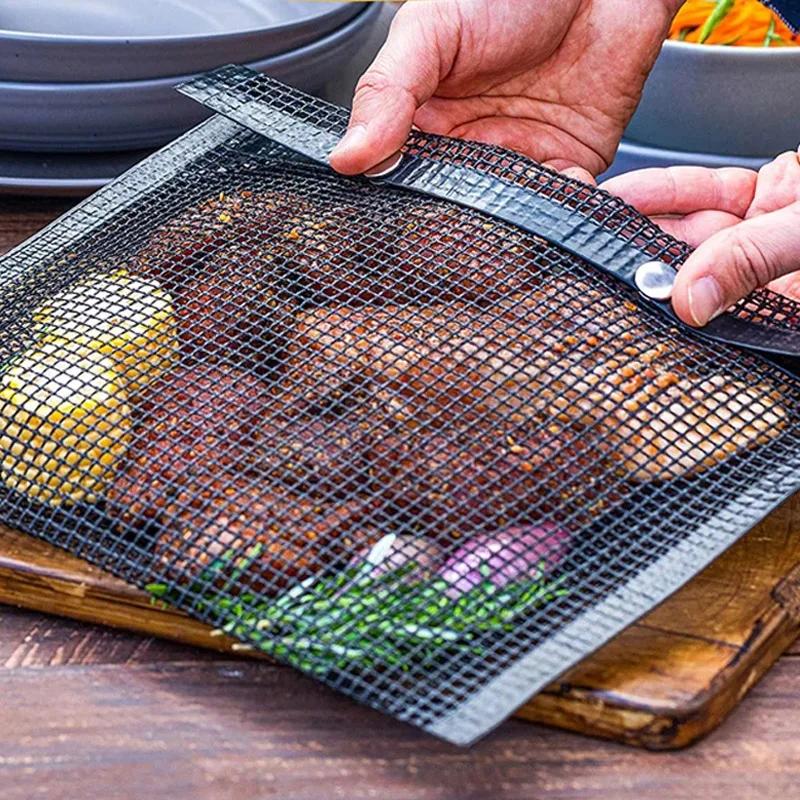 1 шт. сетчатый мешок для гриля для барбекю, многоразовый сетчатый мешок для гриля, сетчатый коврик для барбекю из стекловолокна с покрытием ПТФЭ, антипригарный коврик для гриля, коврик для копчения, выпечки, гриля, аксессуары для пикника на открытом воздухе для барбекю