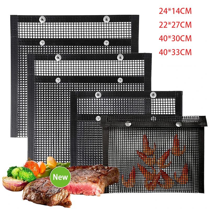 Сетчатый мешок для гриля с антипригарным покрытием, коврик для барбекю, многоразовый коврик для гриля, чехол для приготовления овощей, мяса, термостойкие аксессуары для барбекю, инструменты