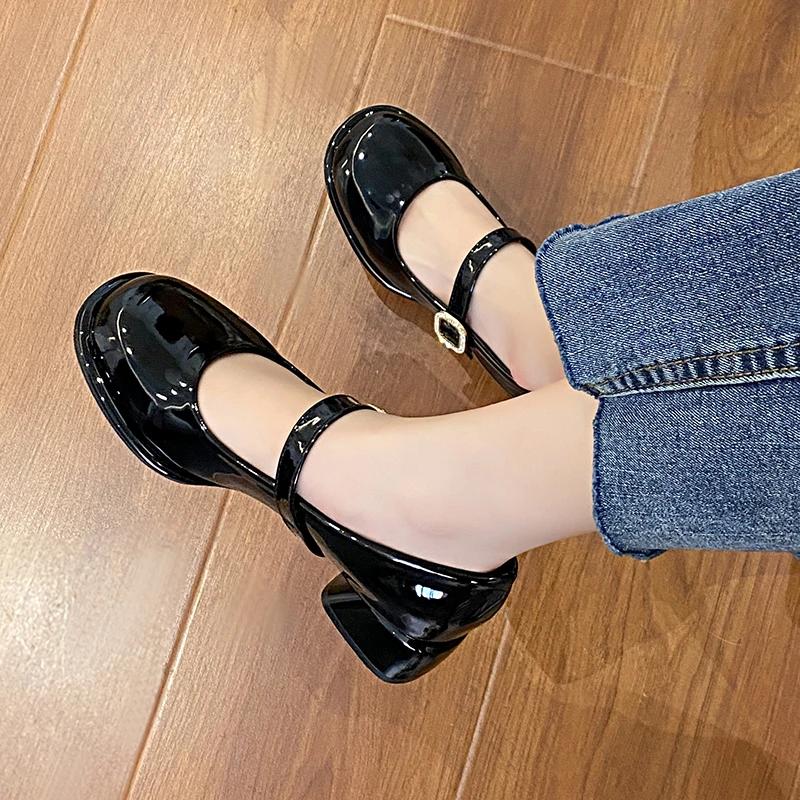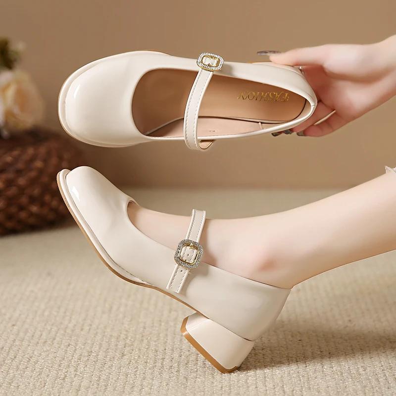 2024 Весна и Осень Модные женские туфли Высокого Качества Однотонные Круглые Носки Неглубокий Крючок Однословная Пряжка Дамы Мэри Джейн