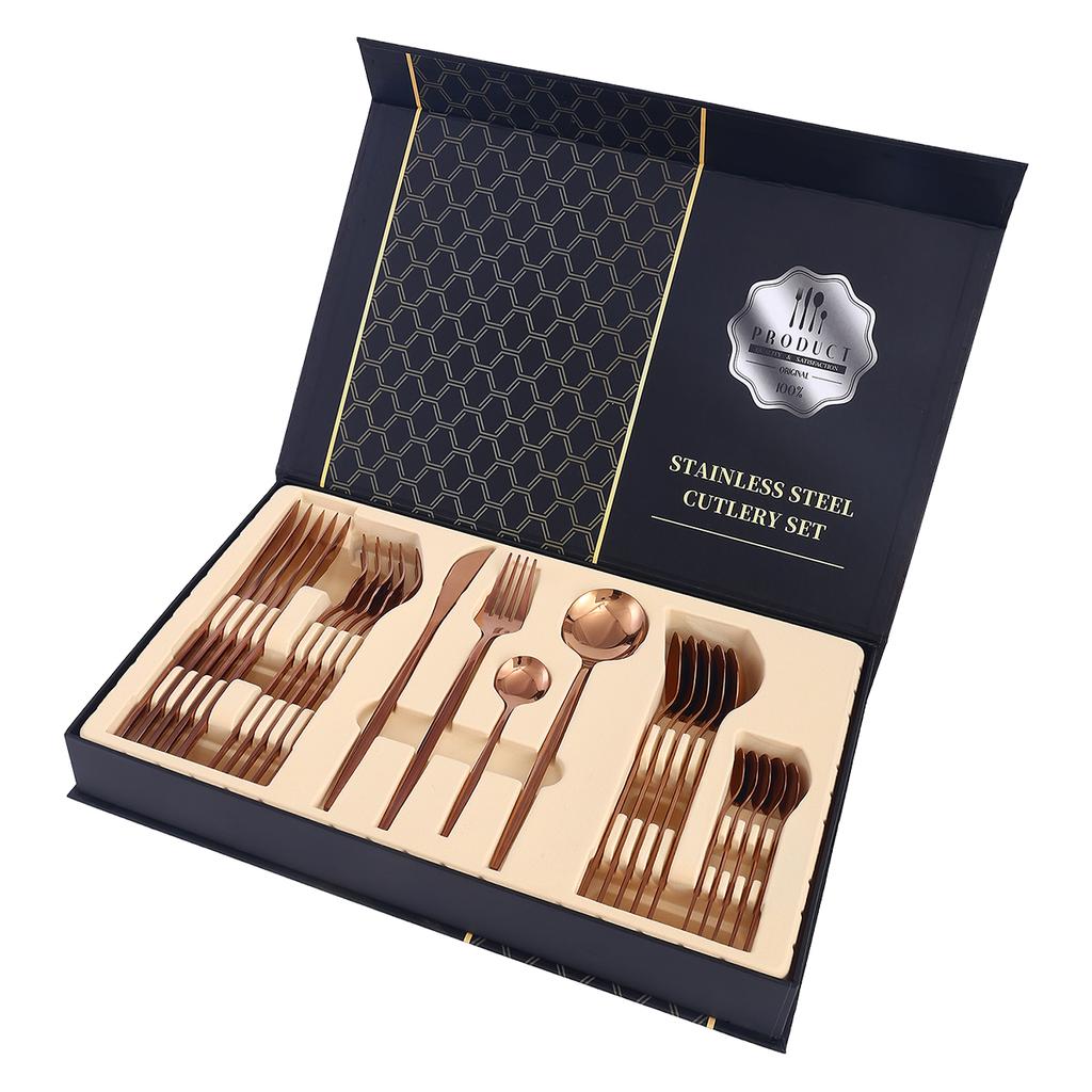 24 шт. нож вилка ложка золотой набор столовых приборов пищевой безопасности столовые приборы из нержавеющей стали роскошная посуда подарочная коробка посудомоечная машина