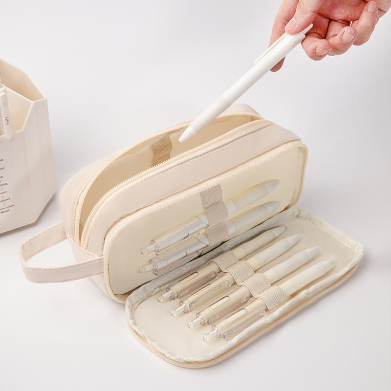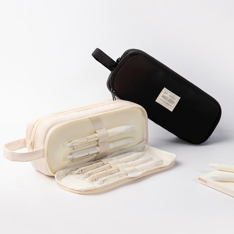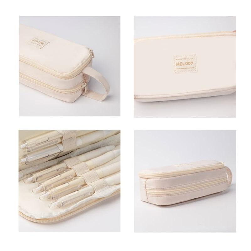 Мешок для карандашей Melody Pencil Bag Pen Case Simple 2 отделения Multi Slots Кремовый цвет Ручка для хранения канцелярских принадлежностей