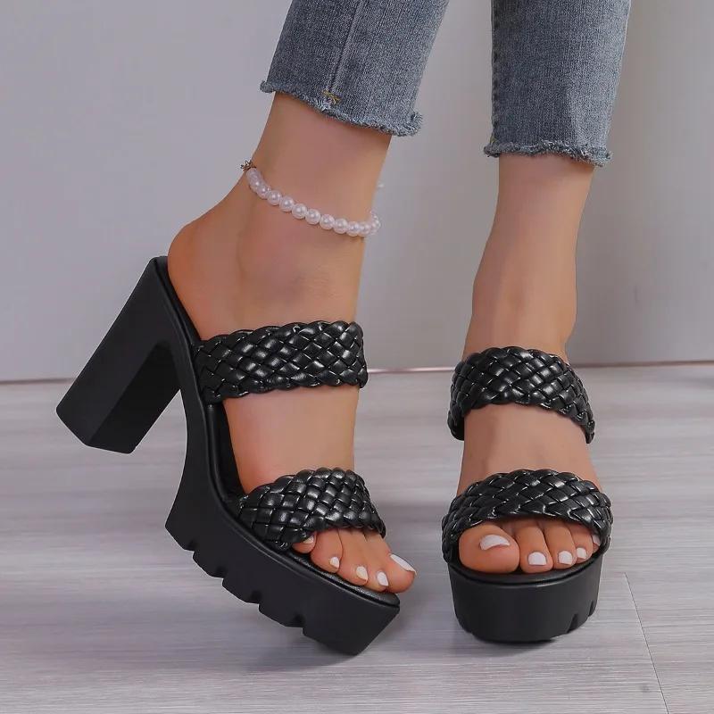 Летняя популярная женская обувь, модные однотонные женские тапочки с открытым носком, римские толстые каблуки, женская пляжная обувь на высоком каблуке