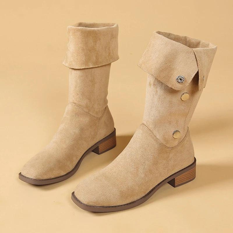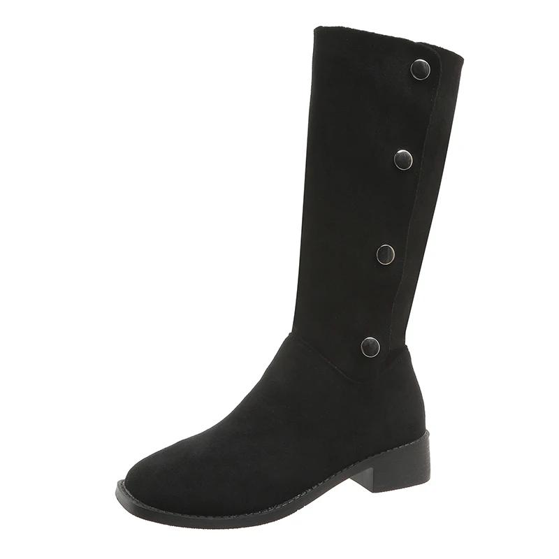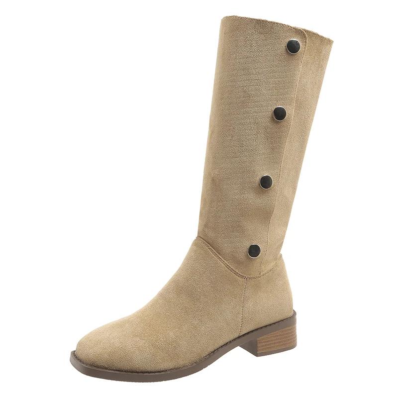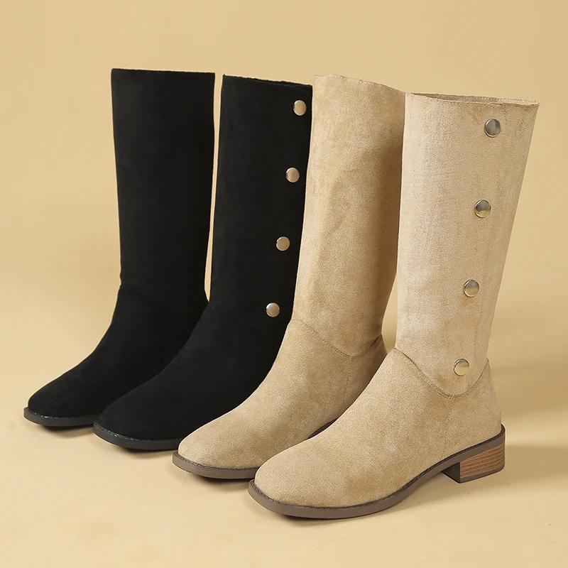 2024 Модные женские туфли, женские сапоги с рукавами, весна-осень, квадратный носок, замшевые однотонные высокие туфли на толстом каблуке, сапоги больших размеров