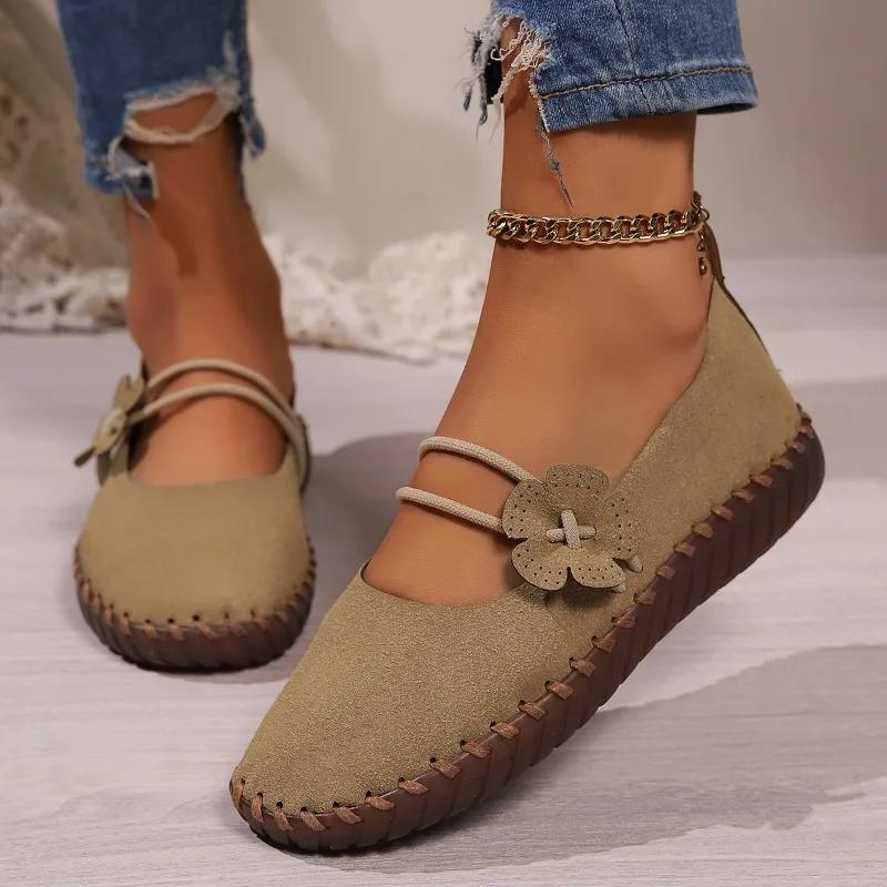 Распродажа женской обуви 2024 года, новые женские туфли на плоской подошве с эластичной резинкой, осенние, с круглым носком, однотонные, повседневные, удобные, большого размера, лоферы