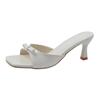 2024 Новые популярные высококачественные летние женские тапочки с квадратным каблуком и открытым носком, женская обувь для банкета и вечеринки, однотонные
