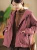 Johnature Модное повседневное пальто с капюшоном и свободной молнией, однотонное, зимнее, с длинными рукавами, в китайском стиле, сращивающееся пальто