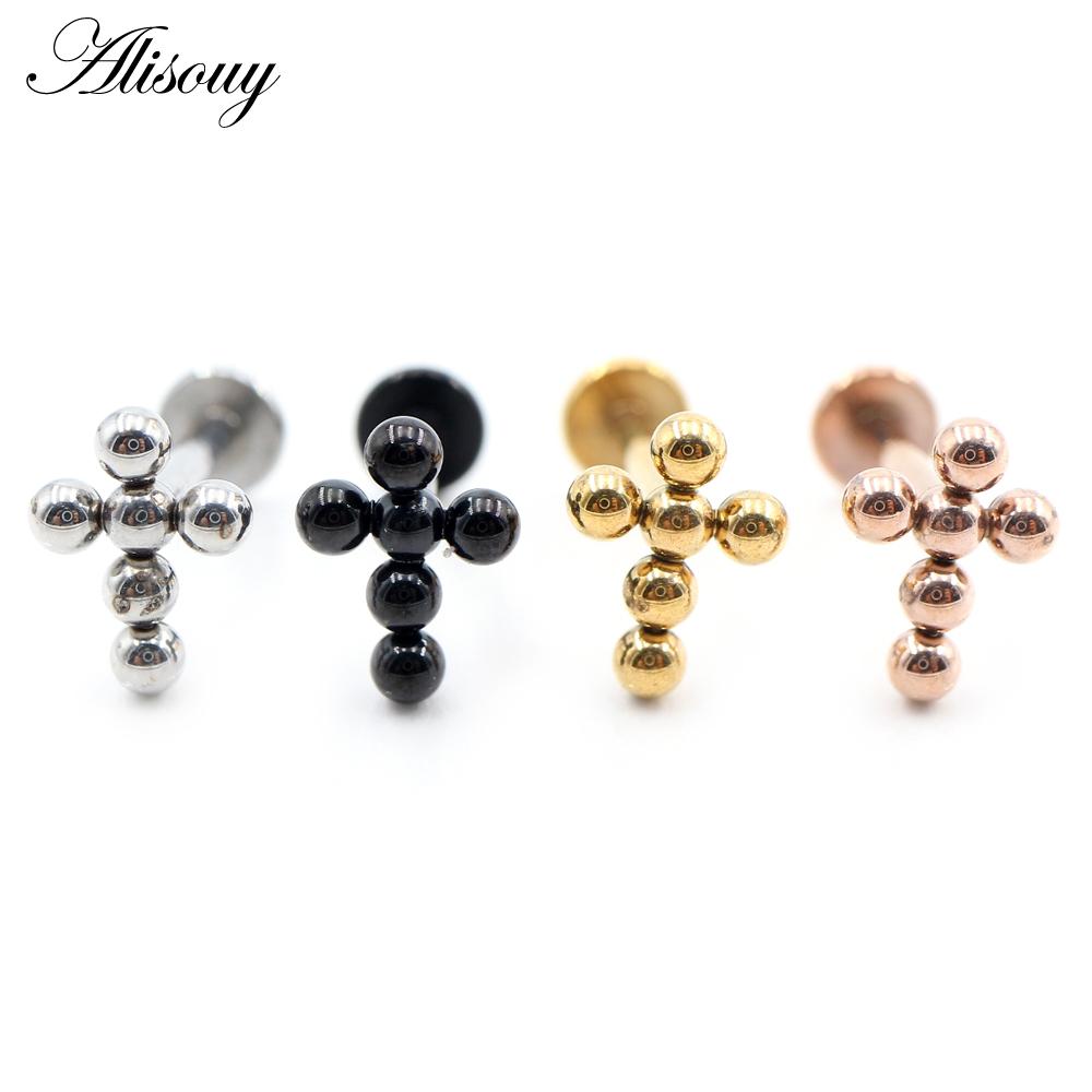 Alisouy 1PC нержавеющая сталь крестообразный шарик резьба ухо козелок спираль лабрет губы кольца хрящ серьги гвоздики пирсинг тела украшения