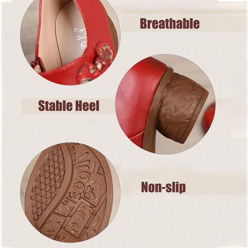 Черные женские туфли-лодочки из натуральной кожи, женские, среднего размера, дизайнерские туфли-лодочки, женская обувь, ретро-туфли с цветочным принтом в стиле бохо на каблуках