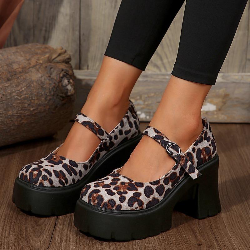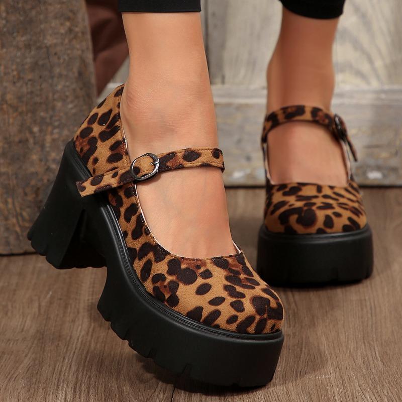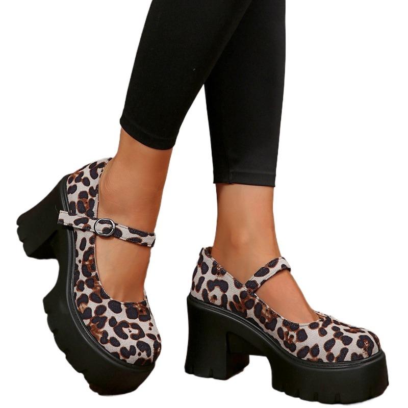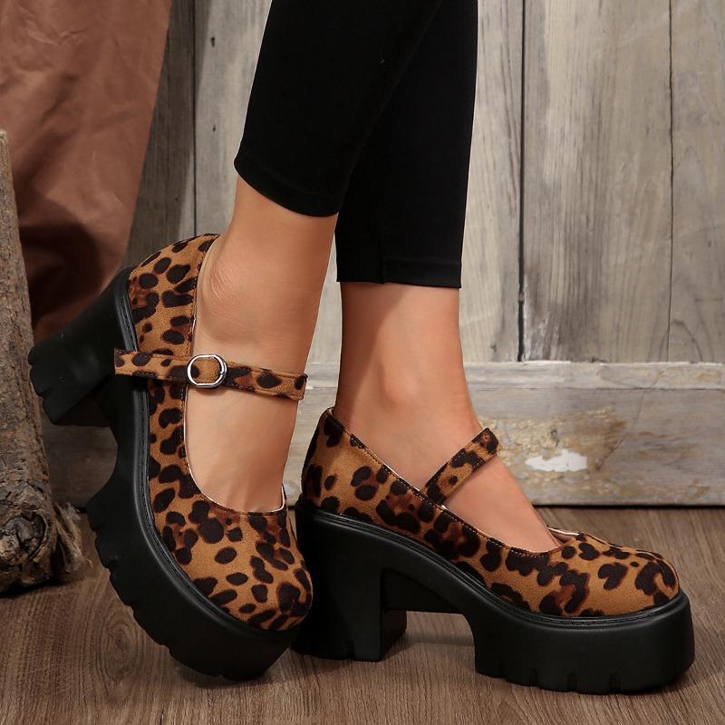 Туфли Мэри Джейн на очень высоком квадратном каблуке с круглым носком и пряжкой на ремешке, распродажа 2024, туфли-лодочки с неглубокой леопардовой расцветкой на весну/осень