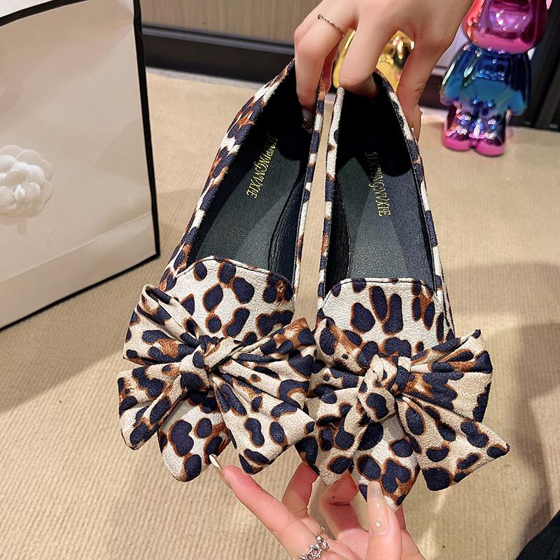 Новые стильные модные женские туфли с леопардовым принтом, женские туфли на плоской подошве, горячая распродажа, бабочка-узел, популярные сексуальные туфли на плоской подошве с острым носком, на низком каблуке