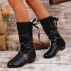 Современные ботинки до середины голени на квадратном каблуке, зимние, на шнуровке 2024 года, высококачественные женские туфли с круглым носком и плоские ботинки с перекрестными шнурками