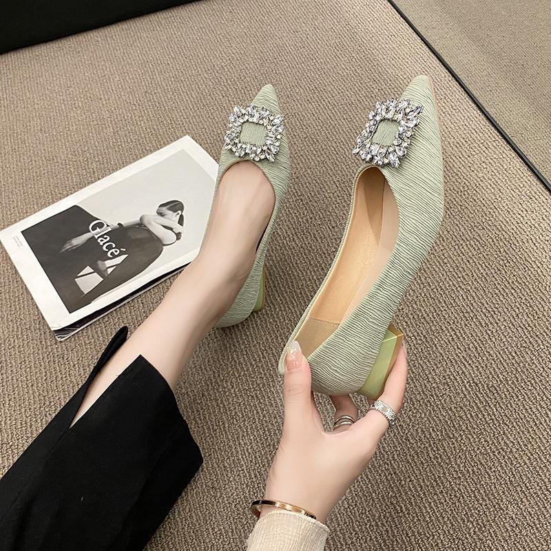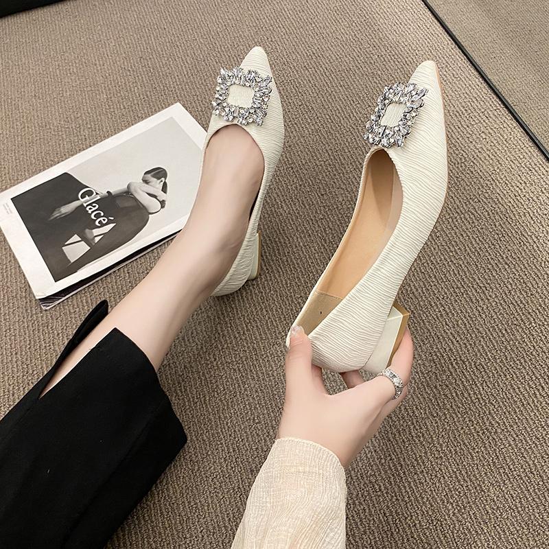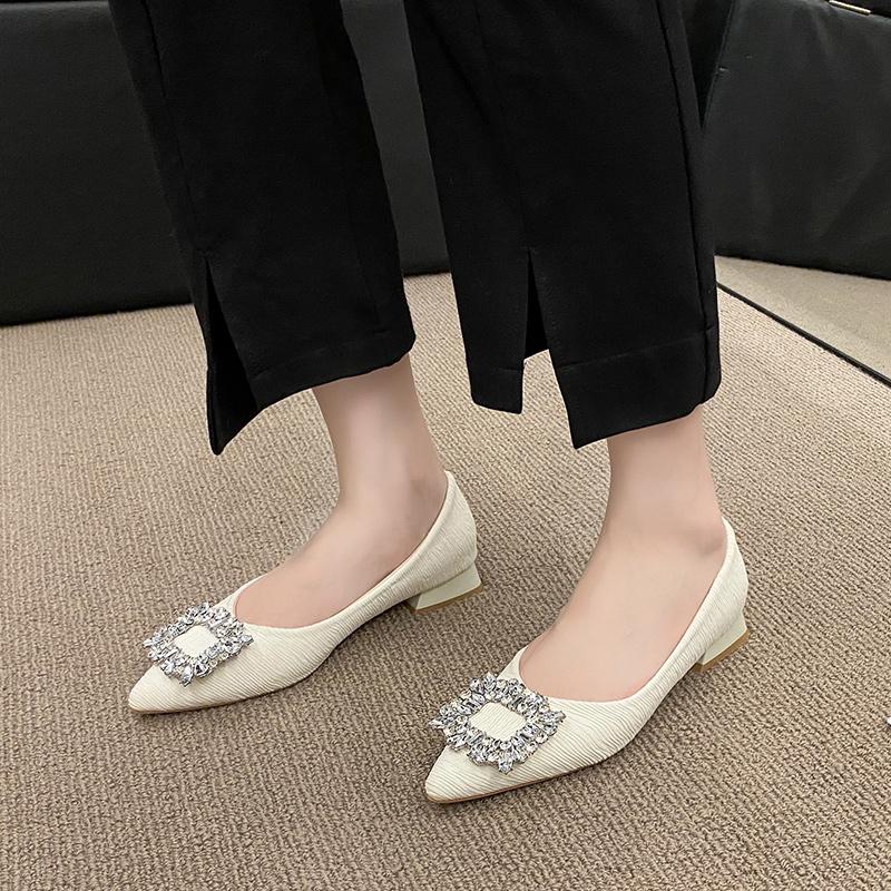 Роскошные туфли-лодочки с заостренным носком и пряжкой из страз, элегантные туфли для вечеринки и свадьбы, удобные туфли для офиса и работы на низком каблуке