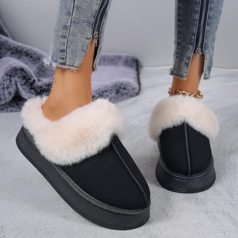 Зимние плюшевые хлопковые тапочки женские туфли на плоской подошве новые повседневные домашние замшевые меховые теплые шлепанцы с открытой пяткой Zapatos Mujer