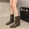 Новые женские сапоги, туфли для женщин, ковбойские сапоги в стиле вестерн, толстые каблуки, ретро, нью-рок, готические сапоги средней длины с заостренным носком, осенне-зимние сапоги