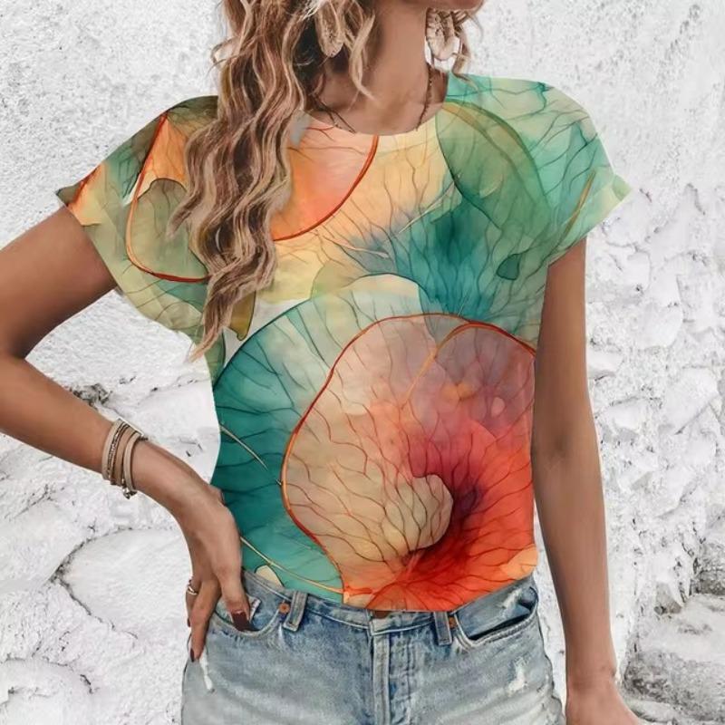 Элегантная женская футболка с художественным цветочным узором, модная футболка с 3D-печатью, популярная женская футболка с короткими рукавами Ummer Leisure — купить товар онлайн с бесплатной доставкой по всему миру!