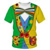 Женский костюм клоуна, цирковая рубашка, взрослая леди, карнавальный наряд на Хэллоуин, большой бант, графический O-образный вырез, 3D-принт, цветные топы с короткими рукавами