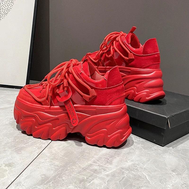 Maogu модные кроссовки на платформе для женщин с толстой подошвой, нескользящие спортивные туфли для папы, женские корейские кожаные массивные кроссовки 2024 года, весна