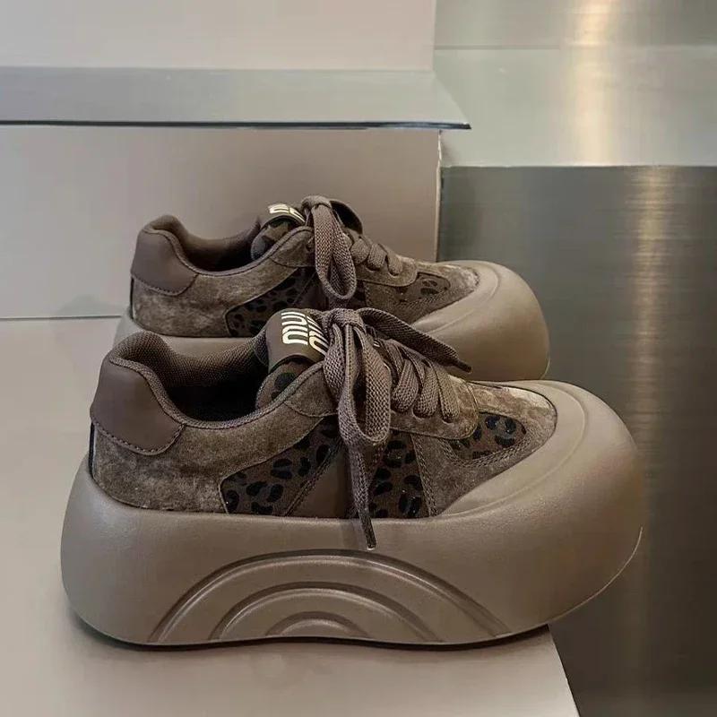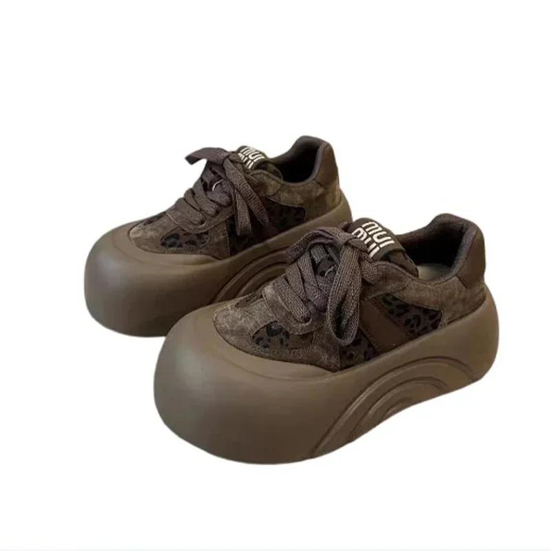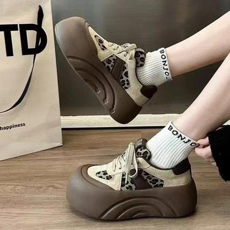 Ботильоны на плоской подошве с леопардовым принтом для женщин, замшевые туфли, зимний тренд 2025 года, спортивная обувь на шнуровке для женщин, новые повседневные зимние ботинки