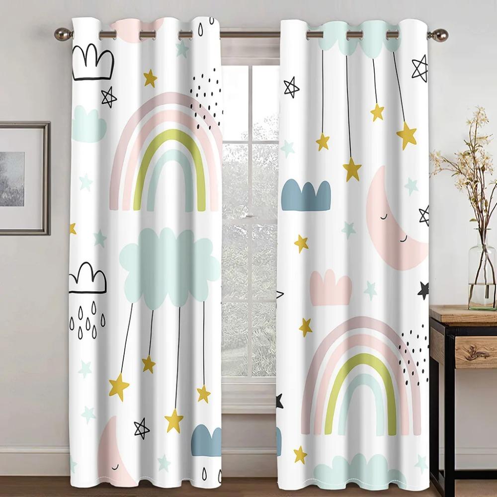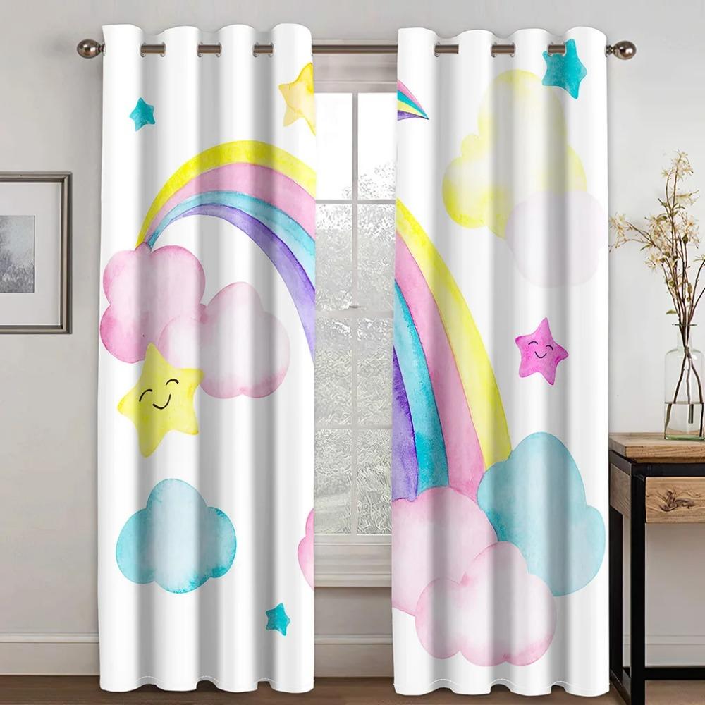 3D печать Радуга милые животные дешевые мультфильм детские тонкие оконные шторы для девочек и мальчиков Декор для гостиной спальни 2 панели