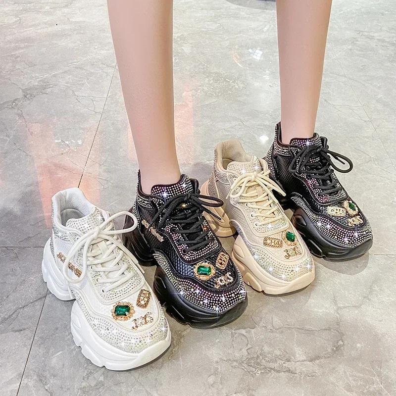Модная женская обувь Новые женские кроссовки со стразами Diamond Breathable Luxury Designer Casual Platform Shoes