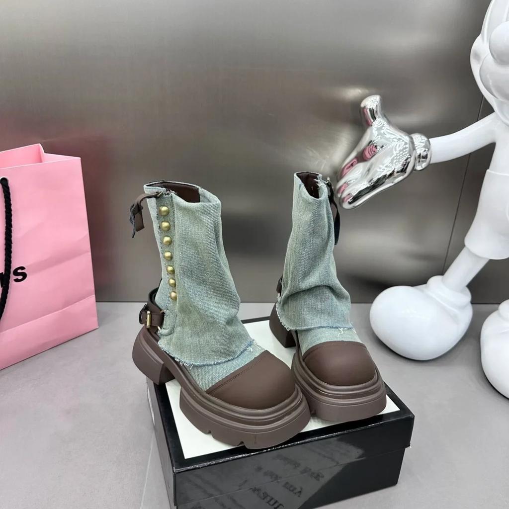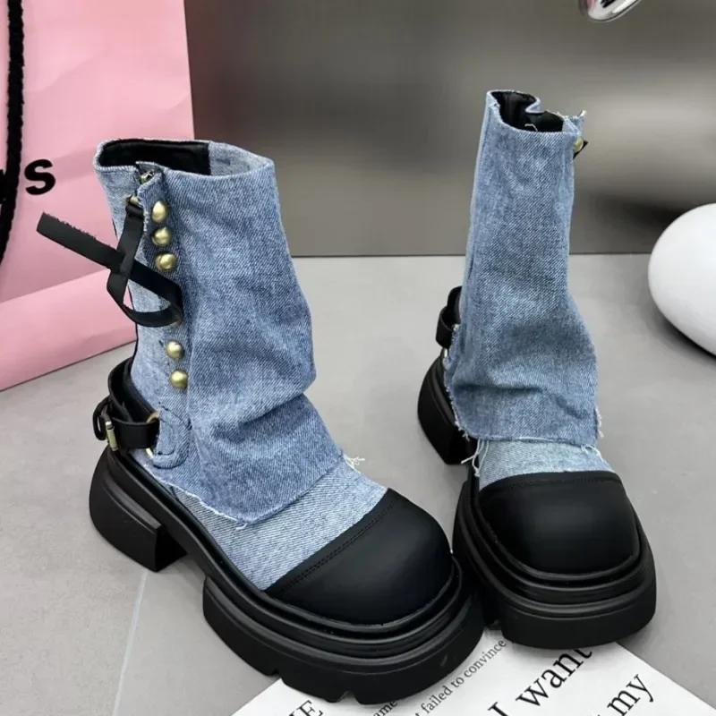 Женские ковбойские ботинки челси на плоской подошве, зимние модные гладиаторские ботинки на платформе, готические туфли 2024 года, новые массивные женские мотоциклетные туфли