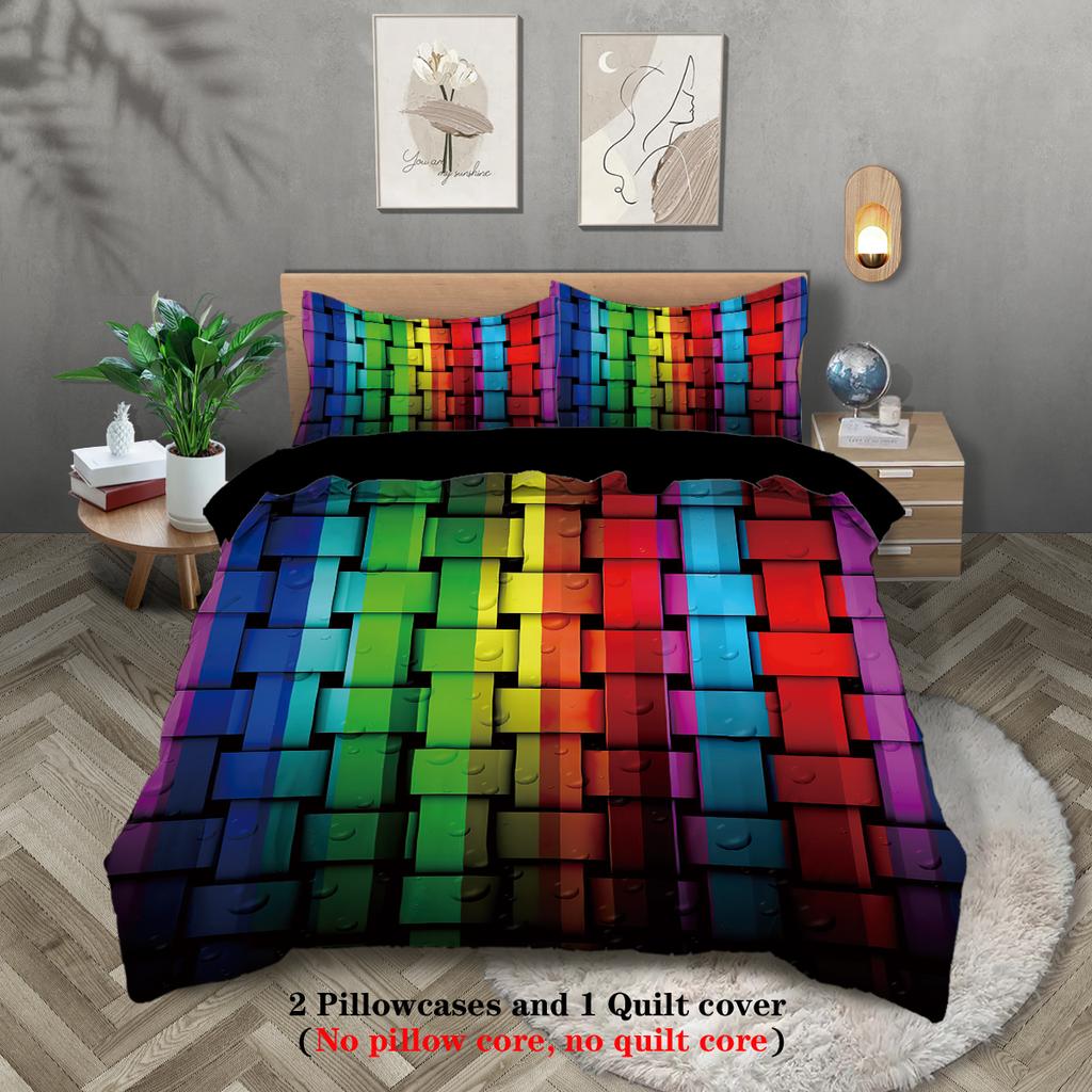 Комплект постельного белья из 3 предметов с цветными полосками и стереоскопическими визуальными эффектами, подходит для подростков и взрослых, 1 пододеяльник + 2 наволочки