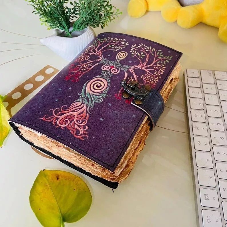 Кожаный журнал «Древо жизни» ручной работы Винтажный кожаный журнал с декоративной бумагой