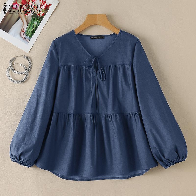 ZANZEA Женская повседневная свободная блузка из денима с V-образным вырезом и длинным рукавом — купить товар онлайн с бесплатной доставкой по всему миру!