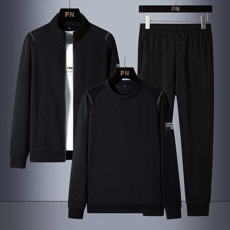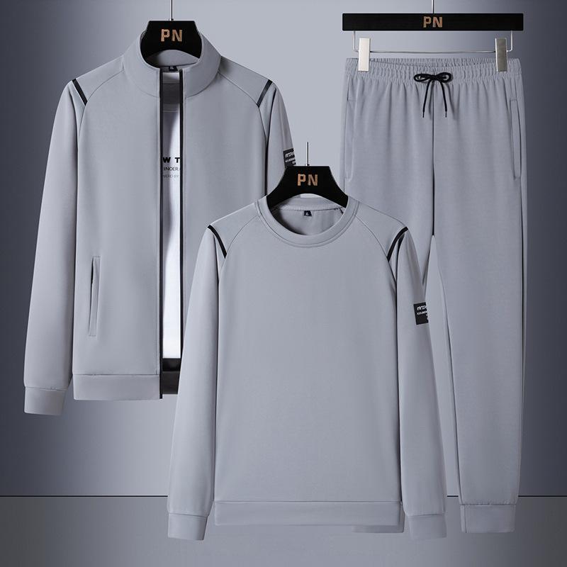 Мужской спортивный комплект для бега, модный повседневный комплект из трех предметов: кардиган + свитер + брюки