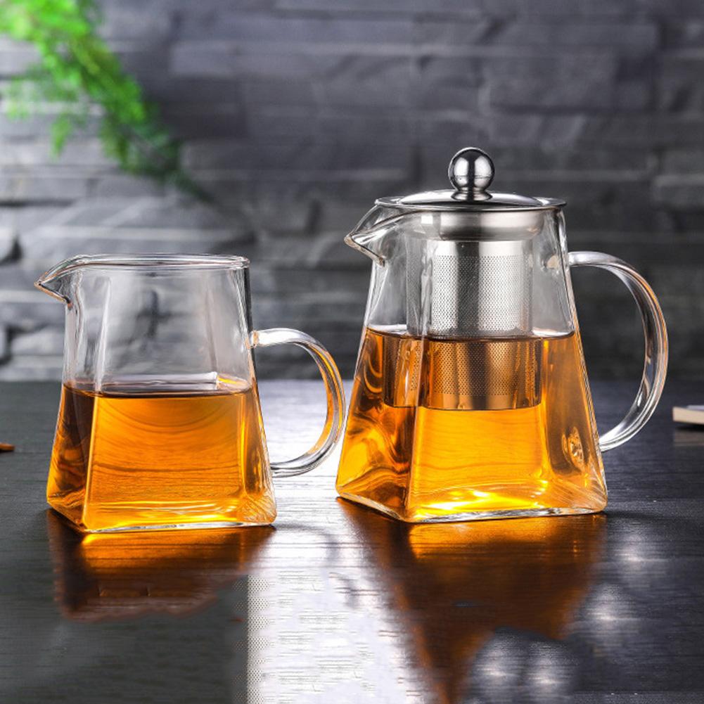 Стеклянный набор для заваривания чая, квадратный маленький чайник для семьи