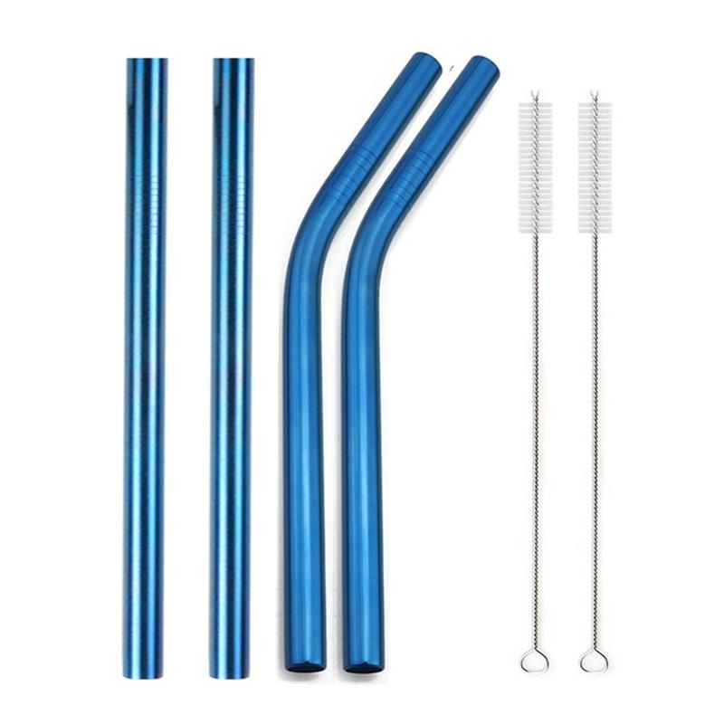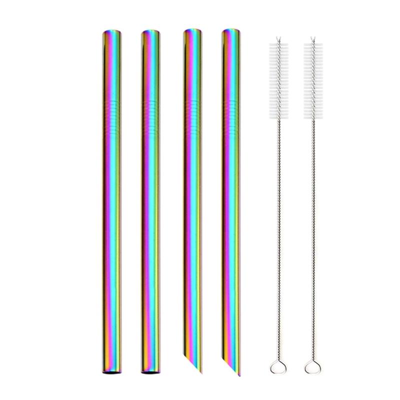 4 шт. разноцветных 12 мм многоразовых металлических трубочек Boba с 2 кисточками 304 нержавеющая сталь трубочки набор для бара питьевая изогнутая трубочка для Bubble Tea